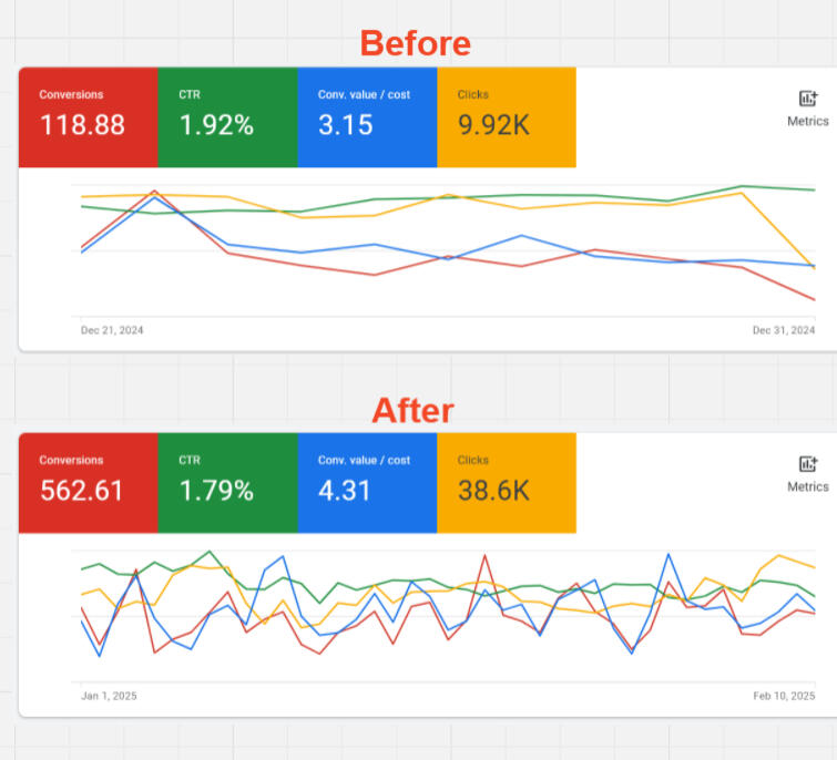 Before this kids toys store was struggling on google. They had a 3.15 ROAS but wasn't seeing it match with the backend numbers and hoped it could be improved.